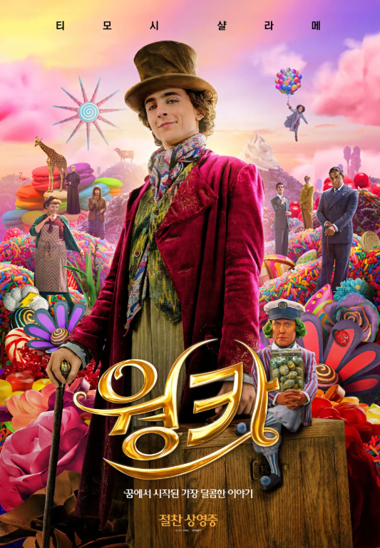 영화의 상징적인 메시지와 주제도 흥미로웠지만, 역시 내 눈을 사로잡은 것은 화려한 연출이었다. 전편을 재미있게 본 요소도 톡톡 튀는 상상력과 창의력에 기반한 연출이었는데 이번 작품 역시 화려한 웡카의 발명품들이 눈을 사로잡았다. 처음에는 세상 물정 모르고 너무 순진하기만 한 웡카가 답답해 보이기도 했다. 하지만, 그런 그의 모습이 오히려 어려운 상황에서도 긍정적인 태도와 희망을 잃지 않는 장점이 되었으며 이는 그의 위기를 극복하는 데 큰 역할을 했다는 점이 인상 깊었다. 어려움 속에서 자신만의 살 길을 찾은 것이 아니라 함께 어려운 상황에 처한 친구들과 협력하고 연대했다는 점도 마음에 든다. 인간은 사회적 동물이기에 공동체 속에서 협력과 연대는 참 중요한 부분이다. 영화는 그런 주제를 잘 담아내고 있다. 무기력하게 상황을 받아들이고 있는 친구들을 곤경에서 빠져나올 수 있게 독려한 것이 웡카였다면, 마찬가지로 웡카의 초콜릿 가게가 어려움에 처했을 때 발 벗고 나선 것 역시 그의 친구들이다. 세상을 살다 보면 참 다양한 어려움을 마주하게 되지만, 그럴 때마다 나 역시 웡카처럼 희망을 잃지 않고 세상을 환상적인 시각으로 바라보며 극복해 나갈 수 있게 되기를 바란다.